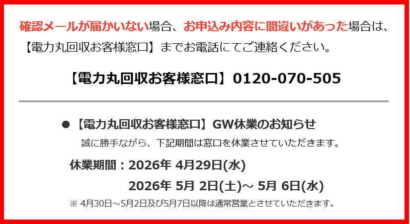 本無償交換等の必要性及び方法を適切に判断・実施するため。電力丸をお持ち込みいただく釣具販売店等のご案内、当該販売店等への情報提供、その他本無償交換等の確実な実施。 |